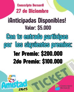Festival de la Amistad y el Reencuentro 2025📅 27 de diciembre ✅Menores de 12 Años ingresan GRATIS Nos preparamos para vivir otra noche inolvidable, y ya podés asegurar tu lugar adquiriendo tu anticipada. ✨No te quedes afuera de este encuentro que reúne a la comunidad, la música y la alegría de siempre. ¡Te esperamos para …