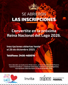 Convertite en la próxima Reina Nacional del Lago 2026. Si soñás con representar a nuestra ciudad y ser parte de un importante evento de la región; la «Fiesta Nacional del Lago» te invita a postularte para la elección de la «Reina Nacional del Lago 2026». Esta elección se realizará el 10 de enero , en …